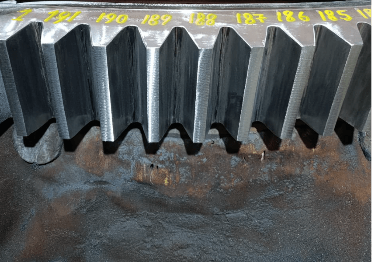 Recuperamos integralmente os dentes desgastados dos sistemas de yaw e pitch através de técnicas avançadas de preenchimento por solda.